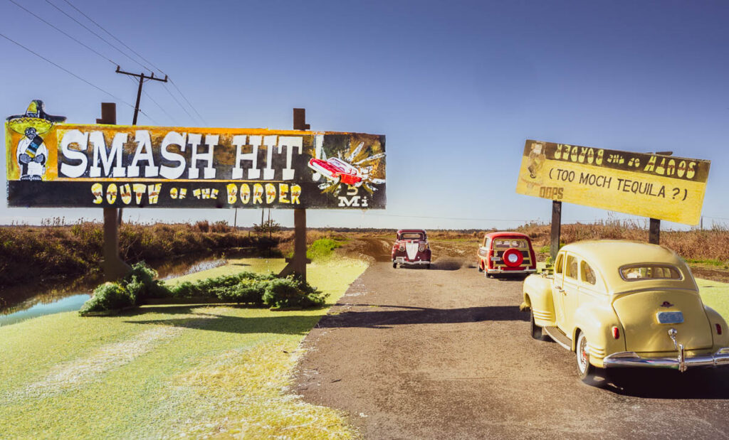 Memories of 1960’s Florida Road Trips created through forced perspective photography of scale model die-cast cars, dioramas, and hand-colored miniatures.Hand built-diorama and die cast period cars photographed with Nikon Z-9 and 14mm lens on location during sunrise central Florida. Final image is a “focus stack” of ten high resolution captures combined in Adobe Lightroom and Photoshop. The “FloridaLand” Exhibit now includes 36 images depicting Florida’s “Golden Age of Road Tripping”